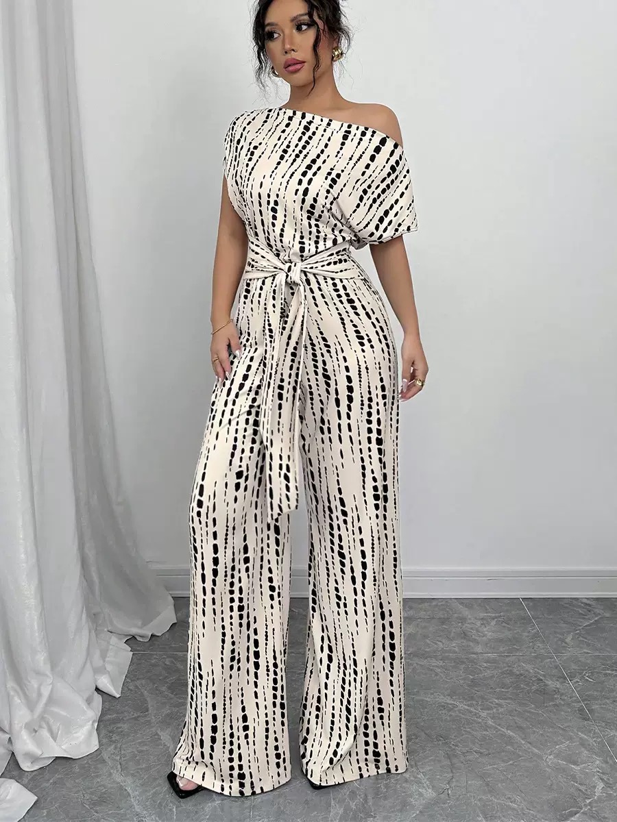 Casual Printed V-Neck Jumpsuit with Straps
